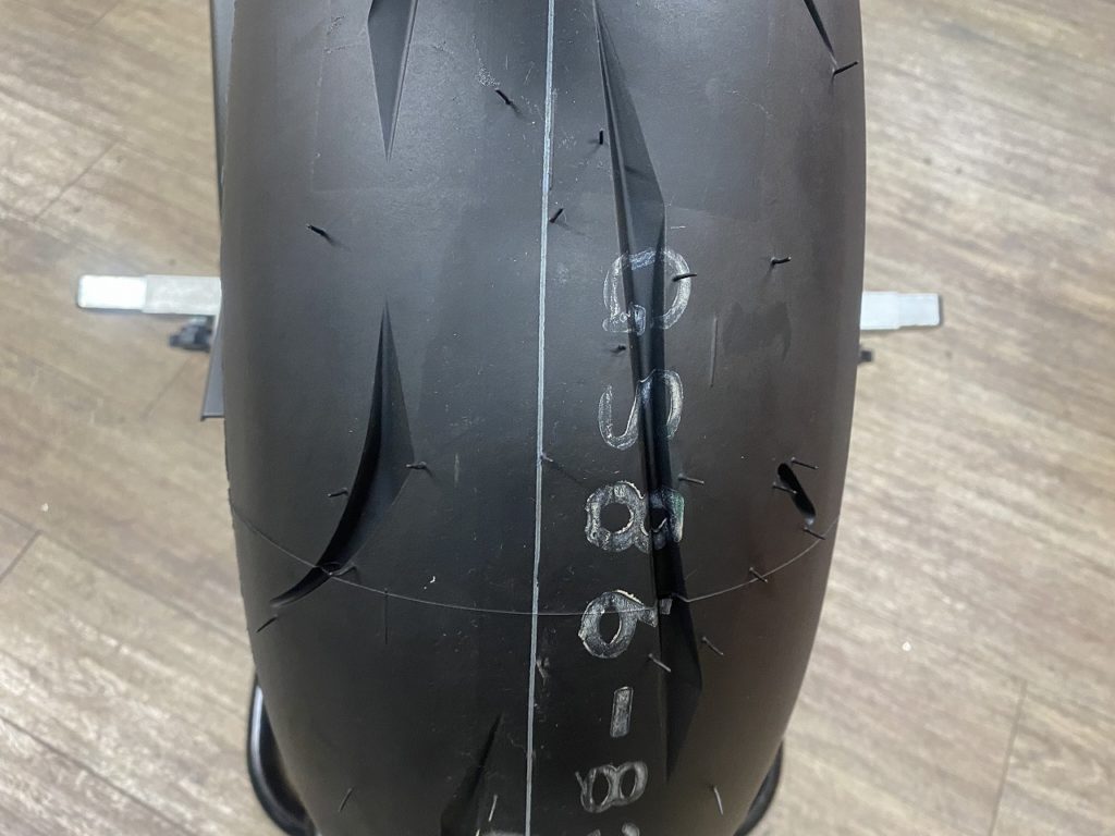 現行のRS11はミドルスーパースポーツのサイズが無いので、ミドルスーパースポーツが装着できるBSで公道走行可能な一番のハイグリップタイヤはRS10になります。