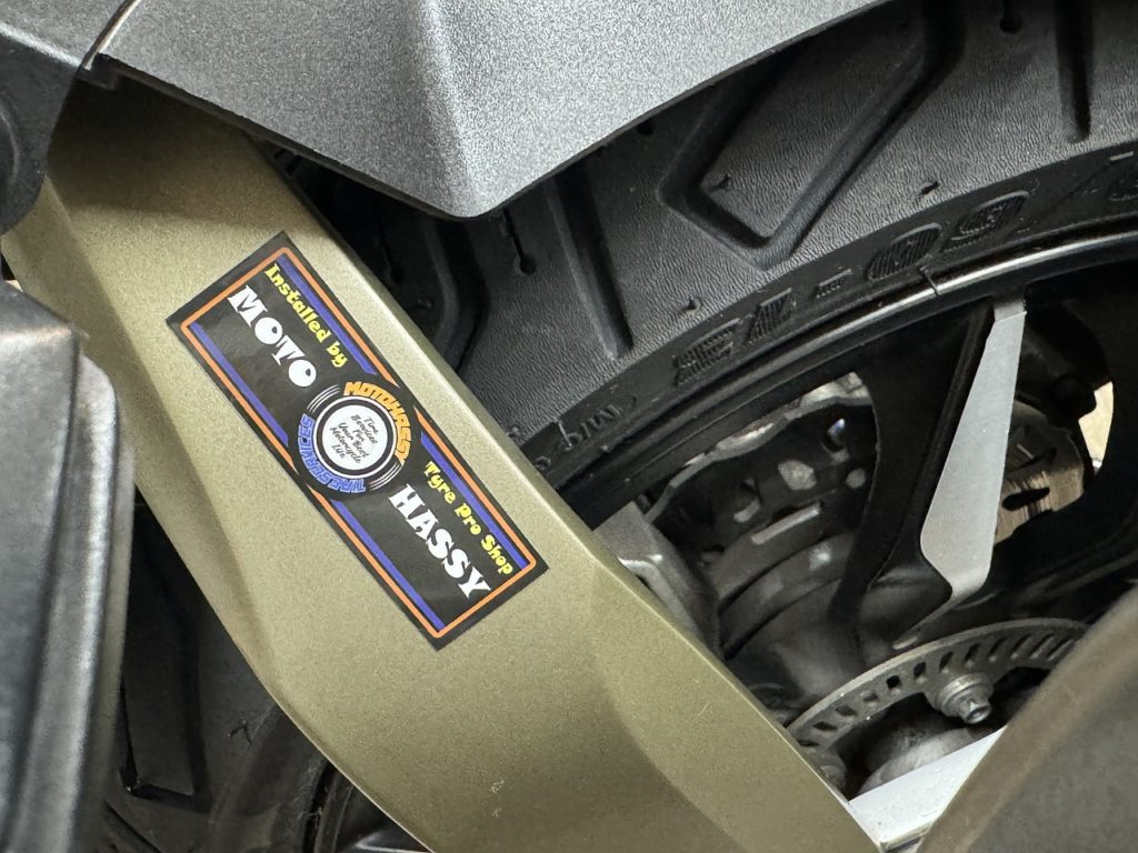 当店は特殊な片持ちフロントサスペンションなどのイタリアスクーターもタイヤ交換可能です!