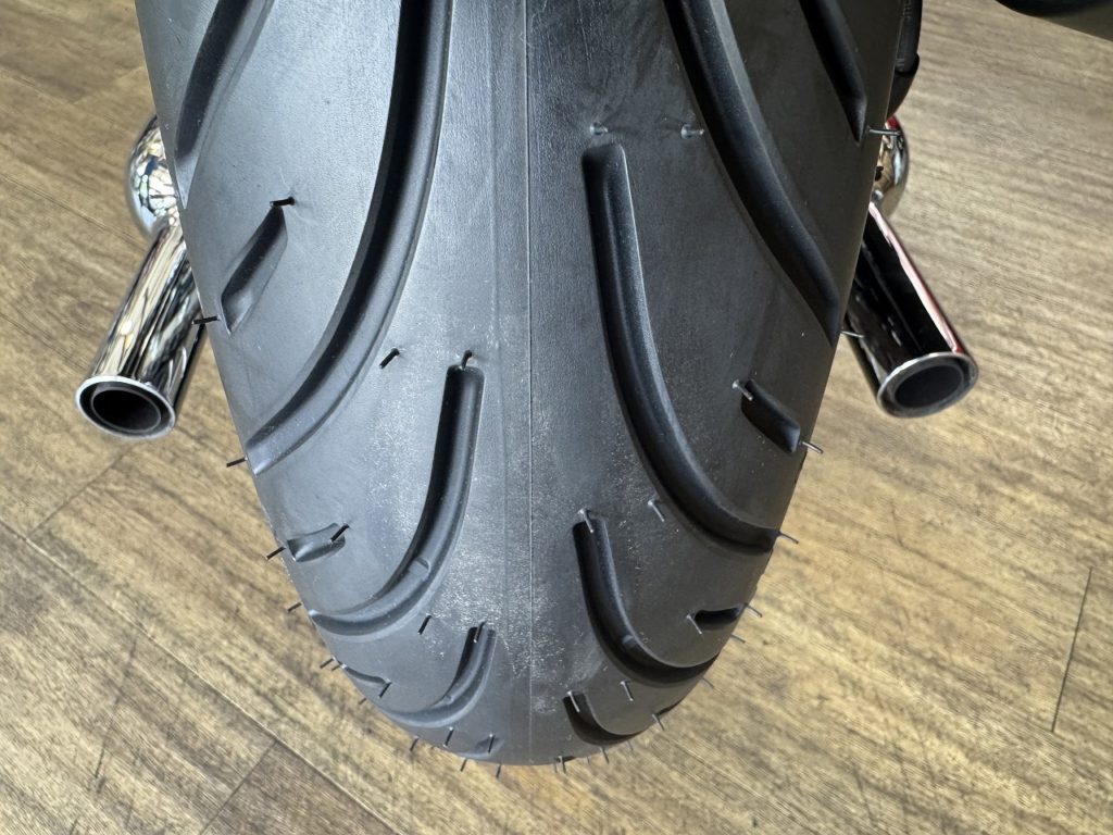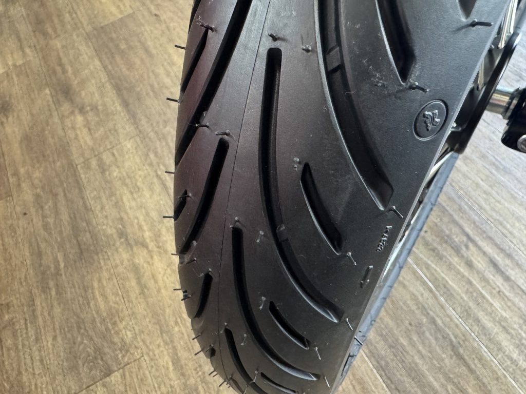 オーナー様は新車で付いていたタイヤが5000kmぐらいしか持たなかったので、今回はミシュランのロードクラシックに交換されました。