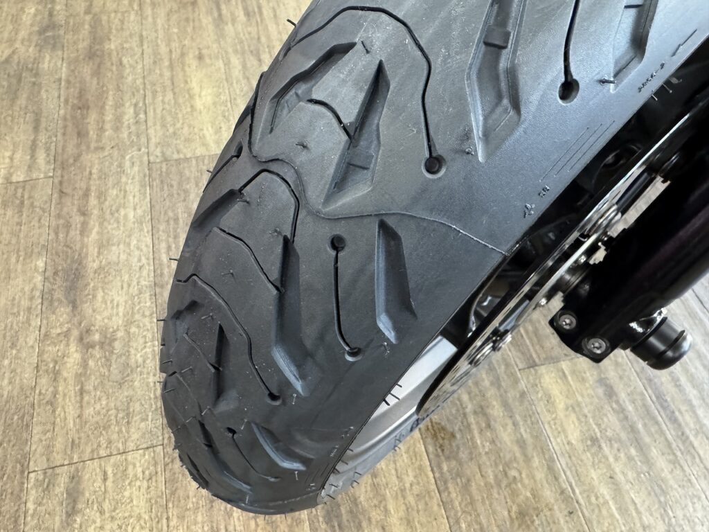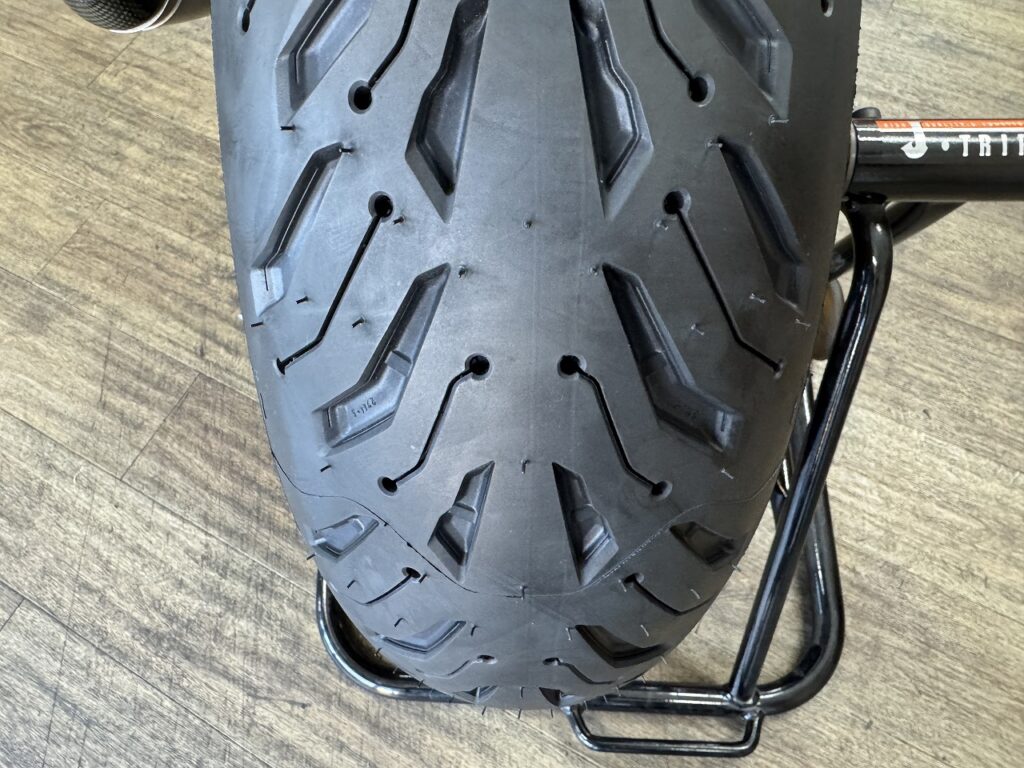 ツーリングメインで、高速道路での安定性を重視されていたので、RnineTの車重とオーナー様の使い方を加味してロード6を選ばさせて頂きました。