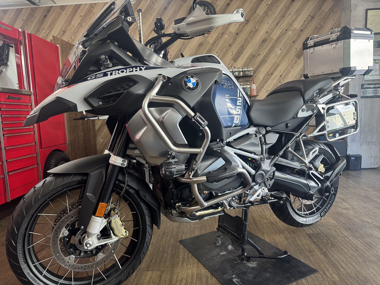 BMWのアドベンチャーバイクの最高峰モデルR1250GSアドベンチャーに、ミシュランのロード向けアドベンチャータイヤ アナキーロードを取り付けさせて頂きました!30Lのビッグ…