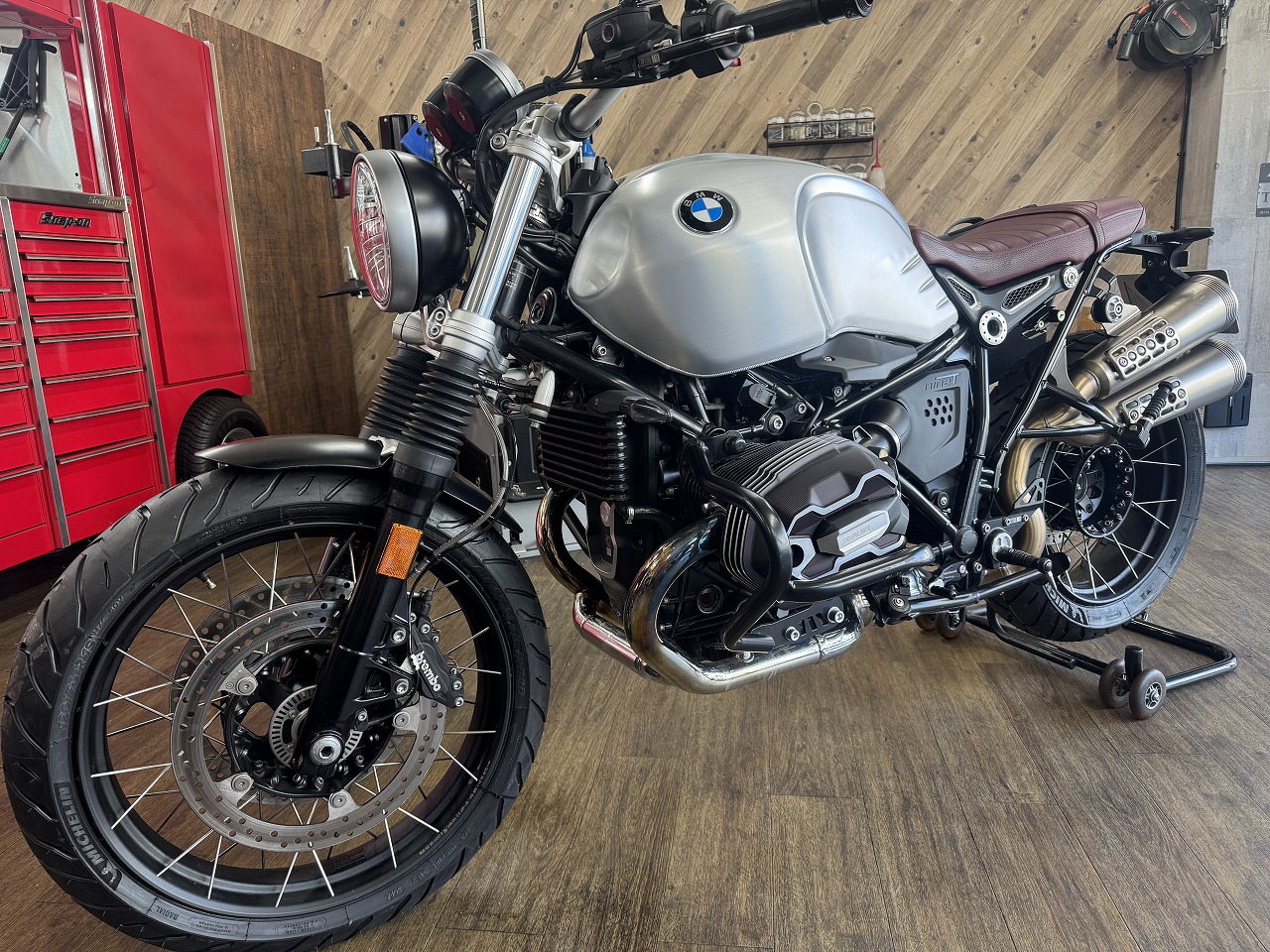BMWのヘリテイジモデルのRnineTの派生モデルのスクランブラーに、ミシュランのロード向けアドベンチャータイヤ アナキーロードを取り付けさせて頂きました!RnineTスクラン…