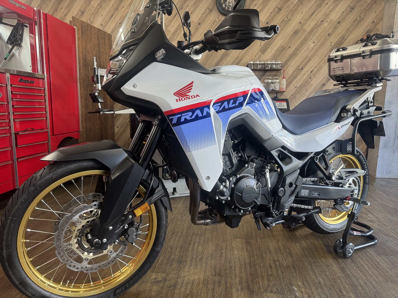 ホンダのアドベンチャーバイク XL750トランザルプに、ミシュランのオンロード系アドベンチャータイヤ アナキーロードを取り付けさせて頂きました!オーナー様はトランザル…