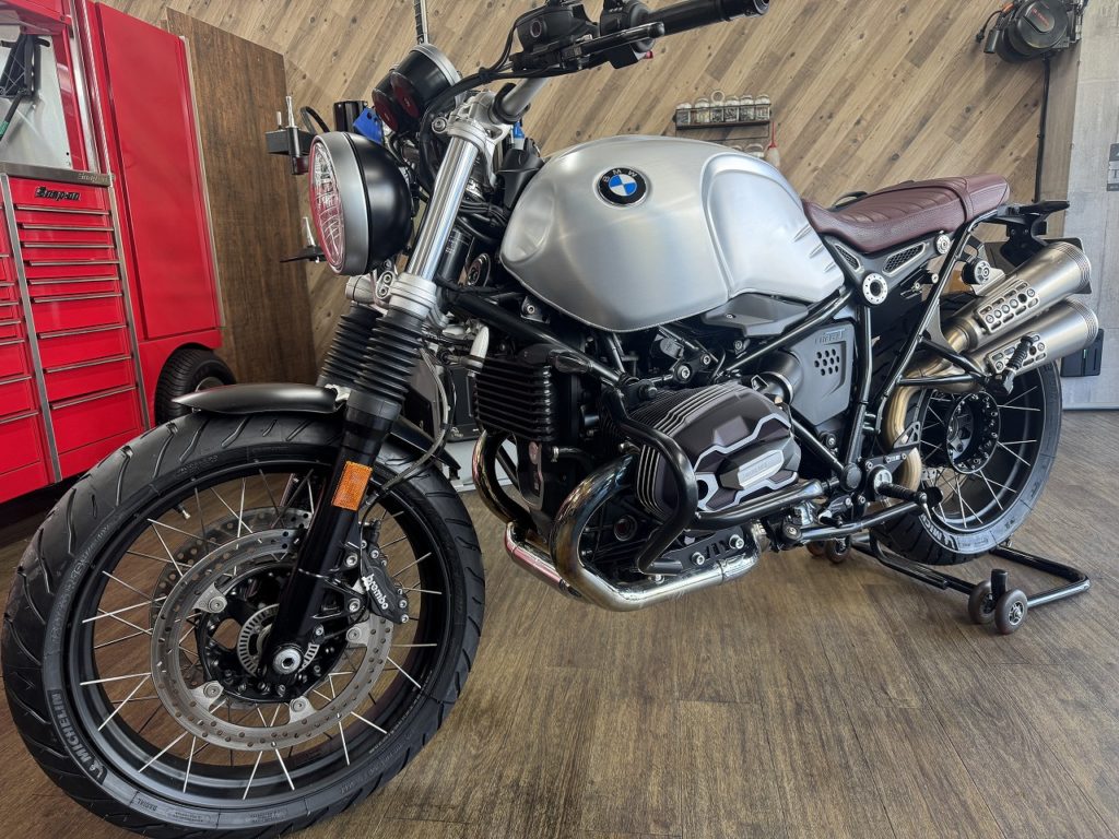 BMWのRnineTの派生モデル スクランブラーに、ミシュランのロード系アドベンチャータイヤ アナキーロードを取り付けさせて頂きました!こちらのRnineTは国内50台限定モデルのファイナルエディションの希少な車両になります。ヘアライン仕上げのアルミタンク... -