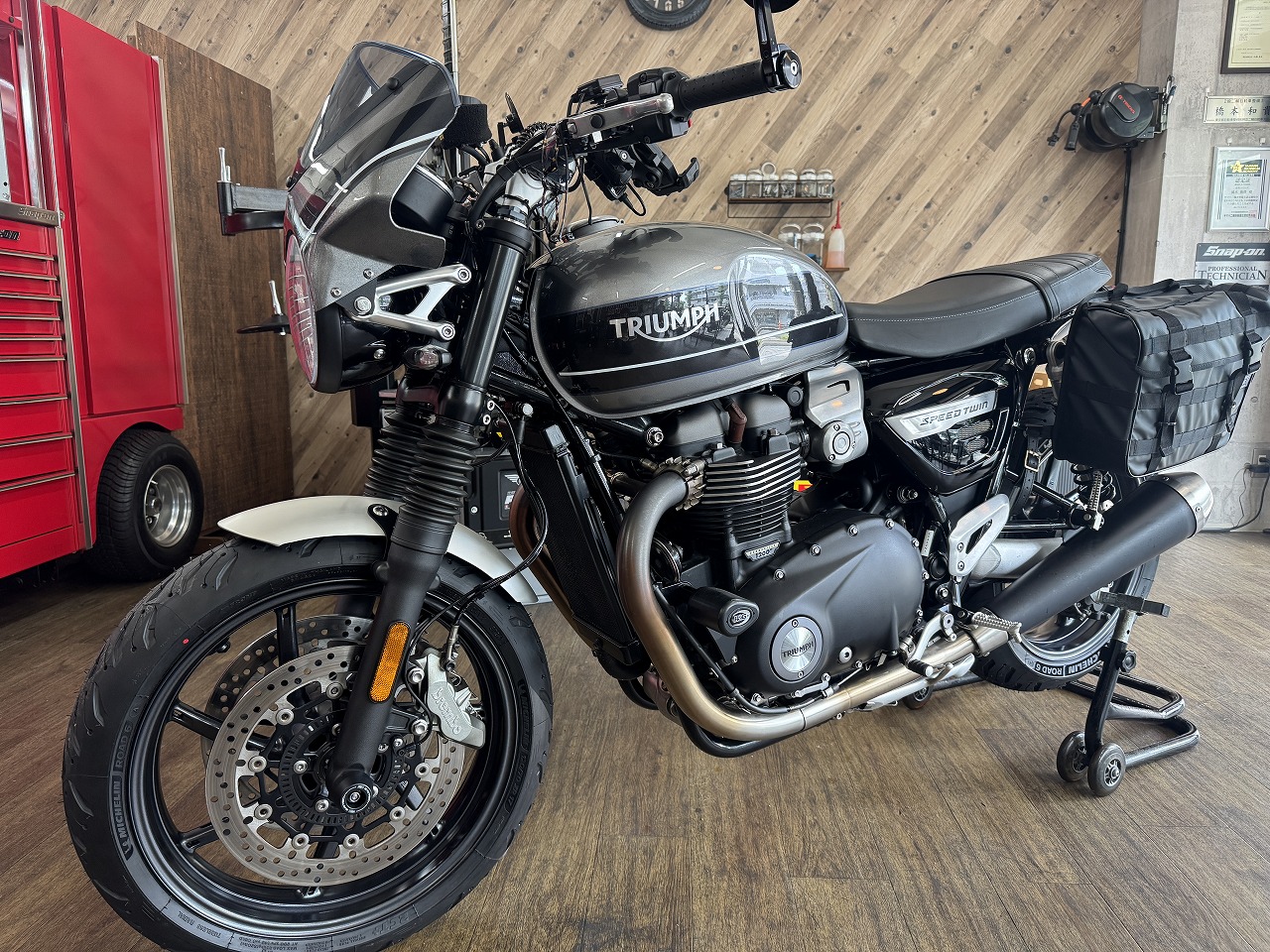 トライアンフのボンネビル系の1200ccエンジン搭載のモダンストリートモデル スピードツインに、ミシュランのツーリングタイヤ ロード6を取り付けさせて頂きました!オーナ…